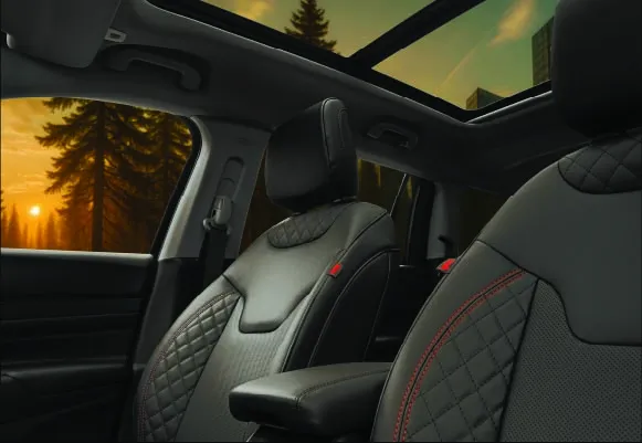 Celebrate your love for the wild, with the new Accentuated Dashboard in the Jeep Meridian Trail Edition with premium, piano black-accented upholstery available in 5 and 7-seater configurations, set to make every journey feel like an escape.