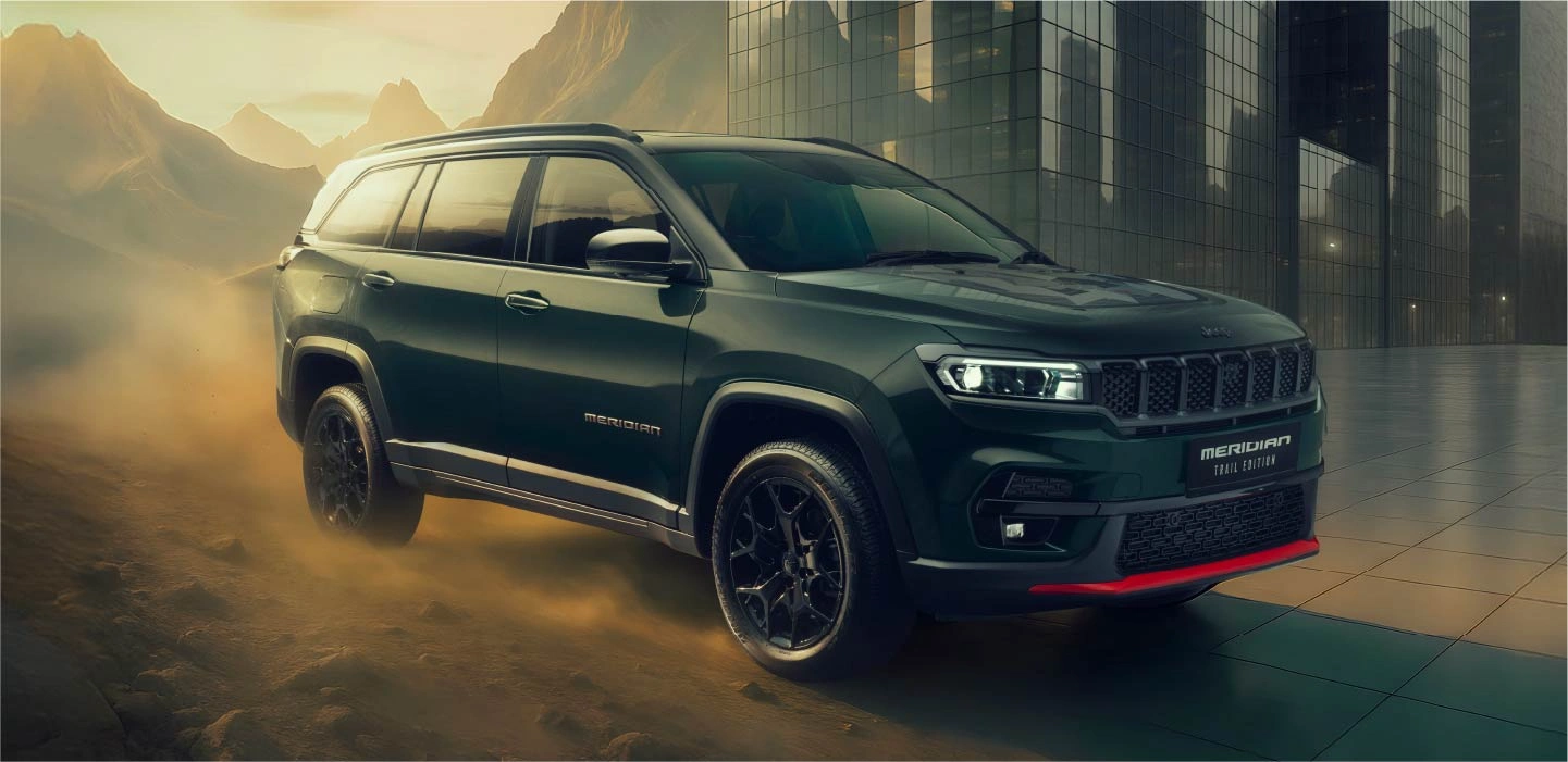 Experience best-in-class capability in the Jeep Meridian Trail Edition, with 9-Speed AT, FSD Suspension, All-Season Tyres, and Dynamic Steering Torque, all of which let you prowl the city with confidence and pride.